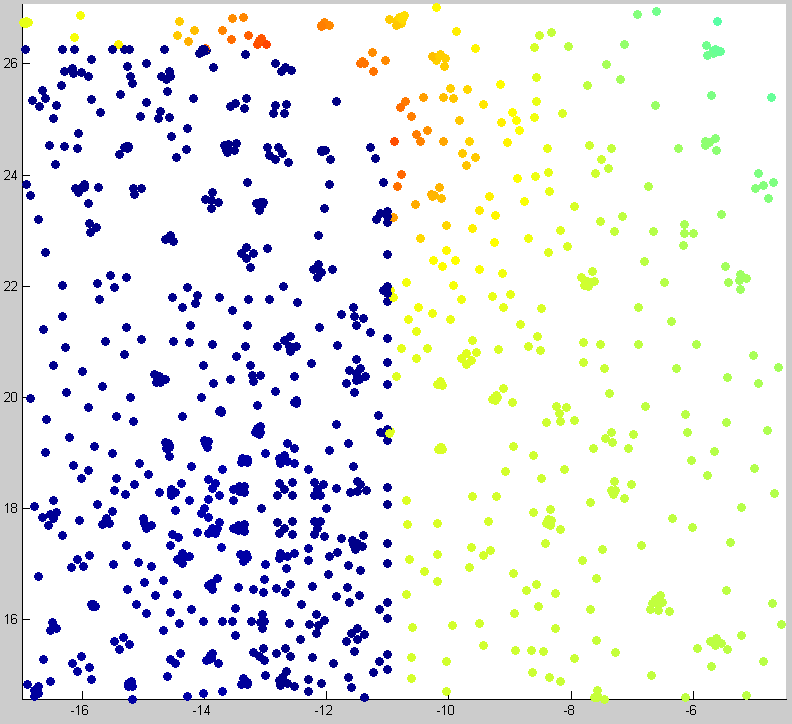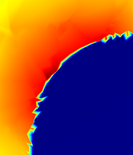 I am having an issue with the MATLAB-Livelink function 'mphinterp'. What I am basically trying to do is plot 2D slice plots of data from the model solution. I am operating on solutions from different steps in a parametric sweep, so I need to save data from evaluated expressions at each step. The 'mphplot' command successfully plots the slice plots in MATLAB that resemble the 3D slice plot feature in COMSOL. However, since the generated MATLAB plot only contains colordata and not the actual data, I want to extract the mesh from the MATLAB plot and use 'mphinterp' to get at the actual data at each vertex in the 2D mesh. When I do this, and replot in MATLAB, the resulting plot looks ok within each domain, but near the boundaries, the values calculated from 'mphinterp' are not consistent with values derived from 'mphplot', and results in pixelated artifacts along the domain boundaries. The attached figures demonstrate this inconsistency. These figures were generated by plotting only the vertex 'markers' in MATLAB. The vertex coordinates are identical, but the derived values are different. I am confused as to why 'mphinterp' is giving different results using the same mesh that is generated from 'mphplot'. I can produce a similar inconsistency in COMSOL by comparing a 3D Plot Group->Slice (1 quick plane at z = 0) and a 2D Plot Group->Surface from a Cut-Plane dataset generated at z = 0, for example. These plots should be identical, but they are not. The former shows a smooth transition at the boundaries (similar to 'mphplot' output) and the latter is heavily distorted near the boundary edges (similar to 'mphinterp' output). Am I missing something? Should I not get the same result from 'mphinterp' when using an identical mesh generated from 'mphplot'? If not, then how can I access the underlying data that 'mphplot' interpolates from the model solution?