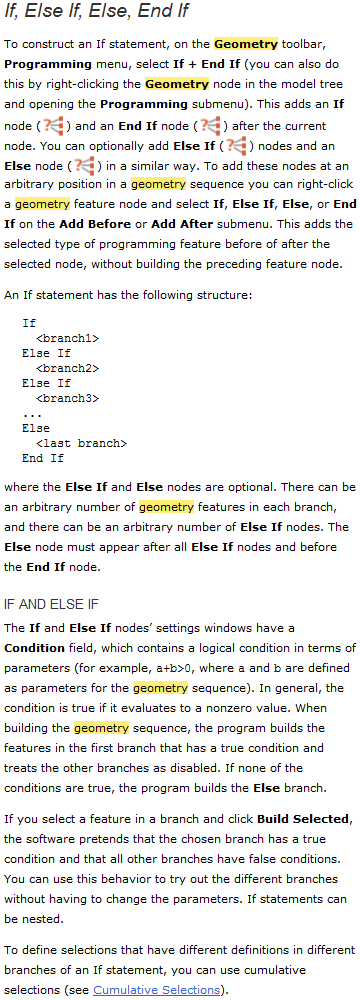 Thank you for your quick response! Perhaps this is what you are trying to show me with the domino.mph file, but I am trying to define a geometry based on a conditional statement as explained in the help documentation which is shown in the attached image. If that's what you gave me sorry for not understanding it better (I'm quite new to COMSOL still). What would be awesome is a tutorial of sorts to understand how to use the feature. Again, thank you for your help!