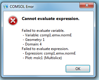 I've read the discussion thread: www.comsol.com/community/forums/general/thread/33767/ but I'm not sure how relevant it is to my issue (I shouldn't be adding comp1.emw.normE to my parameter list surely?).