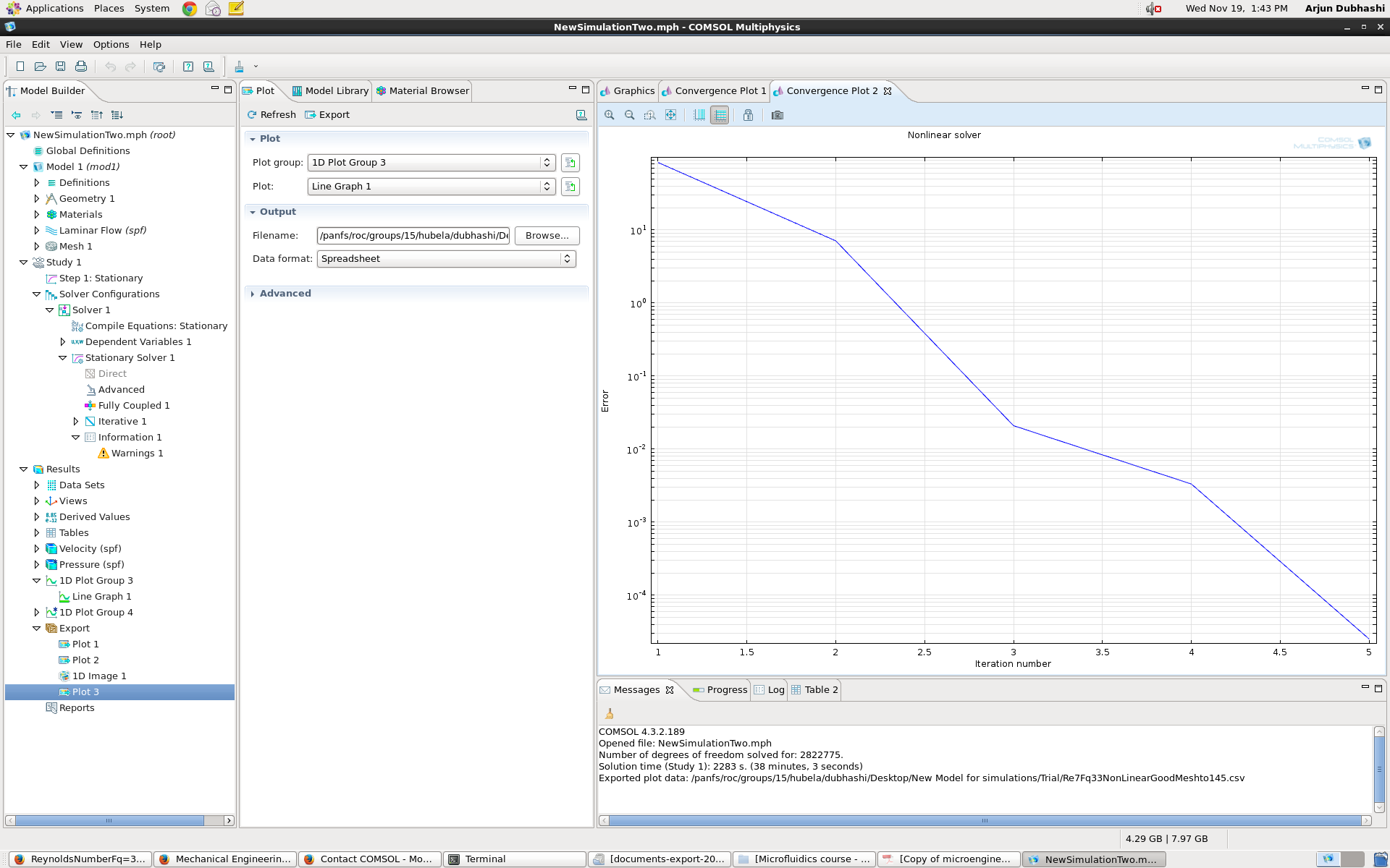 I'm currently using a laminar flow module for the Re 1-10 regime. I plan on using the same upto Re=100 for a microfluidic device and was wondering if this is the reason for the following error.
