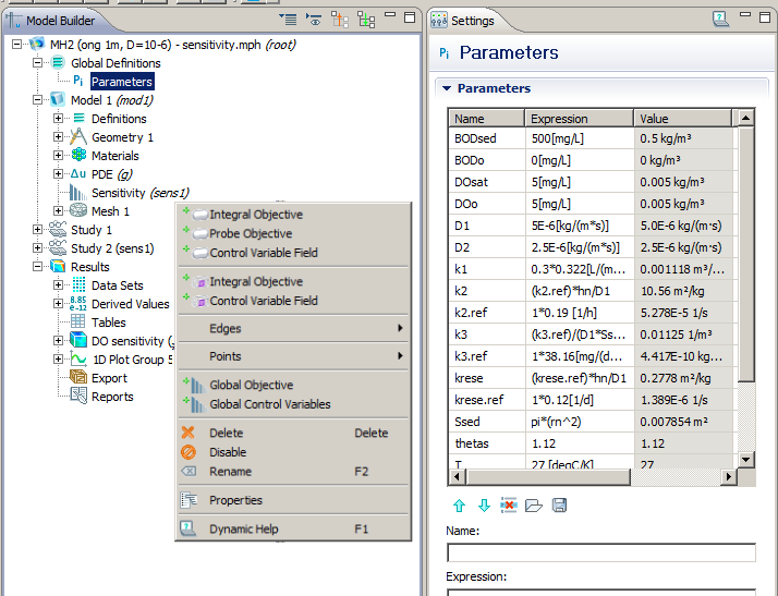 I added the sensitivity module into my model (Add Physics>Mathematics>Optimization and Sensitivity >Sensitivity, as a attached picture below), but do not know what to do next (Comsol V4.2a).
