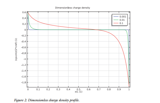 This might sound like an unusual question, but I'm regarding the dimensionless charge density -Why is the Charge density across the domain asymmetrically distributed? i.e, close to the Cathode, it reaches 0.6, while on the Anode, it reaches -1.8. I'm not really able to understand what is the physical reason behind this. Mathematically, I can see that the distribution of Anions is an exponential curve dependent on Potential, which is inherently asymmetric, but even then, shouldn't the distribution of Cations and the distribution of Anions be 'inverses' of each other? I have attached an image of the plot that I'm referring to.