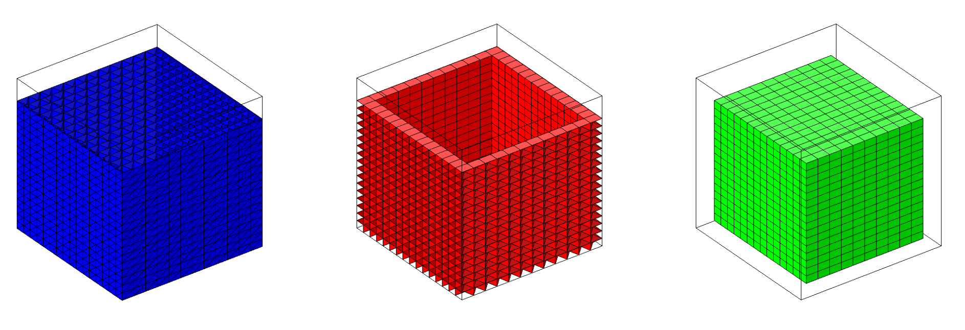 In the end I would like to have one domain (the inner block) meshed with cubes, and it should be connected with prism/pyramid elements to the triangular boundary of the outer block.