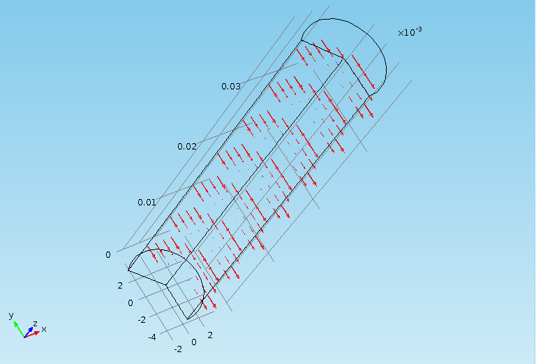 However, when I try the arrow volume plot for the fluid velocity, I get a situation where although the arrows are in the right location and have the right magnitude, they are not pointing in the direction of the local fluid velocity vector. Rather they all end up pointing along the (negative) y-axis.