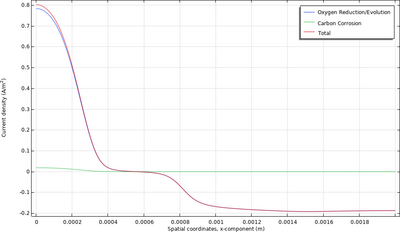 In this model, the shut-down purging scenario is modeled by introducing air on the hydrogen (H2) side. If the gas flow channel on the H2 side is clogged by water, the scenario modeled here may arise.