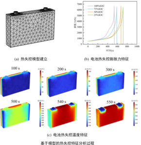 新能源汽车电池热失控特征极大关系着电池的安全边界,本文通过建立单体NCM电池的一维产气反应动力学耦合三维传热几何仿真模型,对电池热失控期间的温度,膨胀力特征进行分析。在COMSOL Multiphysics中先依据电池尺寸建立电池三维几何模型,电池结构为长方体热源,不额外考虑电池极耳的发热功率,将电池视作导热系数各向同性的集总热模型,之后在几何模型的基础上建立一维副反应动力学模型,利用偏微分方程接口模块实现实现电池热失控副反应产热量的计算,最后利用固体传热模块完成电池温度与产热的耦合,并输出相对应的膨胀力数值。通过完成验证的热失控模型,针对热滥用情况中的SOC、环境情况以及热源输出进行了影响分析,结果表明所建立热失控模型具有较好的模拟性,温度信号受热滥用特征影响较大,温度峰值会受电池SOC影响,而膨胀力信号仅在时间尺度上发生推移,峰值特征均被保留,膨胀力增长都远大于初始力,表明膨胀力信号能够在电池安全预警中运用,具有良好的稳定性与准确性。