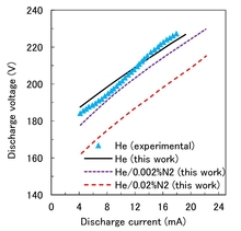 The I-V characteristics in He agree well with the available experimental data and it is found that with the addition of some amount of N2to He, N2is highly ionized, playing an important role in the discharge kinetics, even if its amount is very small such as 0.002~0.02%.