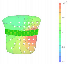The smart chest belt system will be integrated into the biological system for combined performance simulation. The performance of the system will be compared with an equivalent electrical potential of heart beat and the cellular level biological electrical impulse. Typical smart chest belt system and electrical potential distribution are shown in Figure 1.