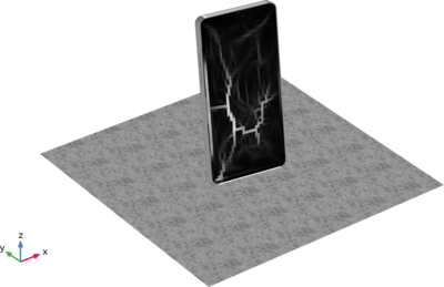 Drop tests are used to evaluate how consumer products respond to impacts and high accelerations. In this example, the Solid Mechanics, Explicit Dynamics interface is used to numerically simulate a drop test of a mobile phone, highlighting the permanent deformation of the aluminum case and the damage sustained by the glass screen.