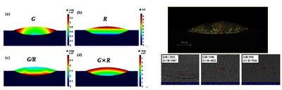 热量输入、质量添加和散热条件直接影响熔池的形貌特征和内部流动特征。着重分析了不同的热量分布及质量分布对熔池特征量的影响。比较了高斯分布、宽带分布(长宽比5:1)和线分布(长宽比50:1)的热量热质输入条件下熔池形貌、温度梯度、流动特征等所呈现的不同特征。