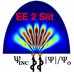 INTRODUCTION: The paper illustrates the use of COMSOL for obtaining the solution Ψ(x,y,t) as a solution to the time dependent nonlinear Schrödinger equation (NLSE). COMSOL previously was used to solve the time dependent NLSE in Ref.[1] as applied to quantum mechanics, however this is the first application of NLSE to water surface waves. The governing fluid mechanics PDEs in terms of the primary variables surface elevation of water h(x,y,t) and velocity potential φ'(x,y,t) are transformed into an alternate form of two simultaneous coupled PDEs having the form of the NLSE, where now the complex wave amplitude Ψ(x,y,t) (called wave function in quantum mechanics) and associated potential Φ become the new transformed unknowns. USE OF COMSOL MULTIPHYSICS: Nonstandard PDE’s often encountered in physics research is a good fit for applying COMSOL’s general equation solving capabilities. The Equation Based Modeling General-Form PDE "time dependent" study is employed herein. The distortion of the freely propagating Schrödinger equation waves by the presence of a nonlinear Ψ|Ψ|^2 term in the nonlinear Schrödinger equation is examined through a series of examples by varying the PDE parameters which govern which class of PDEs these represent (e.g. Elliptic-Elliptic(EE), Elliptic-Hyperbolic(EH), or Hyperbolic-Elliptic (HE). RESULTS: A series of increasing complex models are examined starting with simple Free Field PW propagating down a wave guide for each of the EE, EH and HE category cases. Figure 1 is an example of the EE case and shows two time snapshots of the normalized |Ψ′| vs x′ both with the nonlinear term Ψ|Ψ|^2 in play vs linearizing it with Ψ|Ψ|^2 -> Ψ. Figure 2 is the same solution but vs. normalized time t′ at two fixed x′ locations. Solution validation is made by solving the same problem with an alternate FEM application (labeled as Math) where good agreement is achieved. With the same model parameters employed in the 1D examples, 2D models are examined by driving the field through 1 slit as in Fig.3 and then through 2 slits as in Fig.4 . The 1D Fig.1a repeated string of spikes is also similar to the 2D Fig.3a radial string of spikes formation. The Fig.4 build up of constructive and destructive interference patterns are formed as the two sources interact. In the paper the effect of varying controlling model parameters such as those defining the EE, EH and HE PDE class , nonlinear-linear PDE coefficient, and temporal drivers (steady wave train vs short pulse ) are evaluated . CONCLUSION: The application of COMSOL to pure physics is explored and successfully applied, with particular emphasis on solving nonlinear partial differential equations. Validation checking against alternative FEM solutions showed good comparisons. The dramatic effect of the nonlinear term in the DS equations gives insight on how rough surface waves are formed.